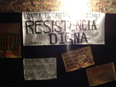 Compartimos las causas reinvindicadas en la accion solidaria que realizaron compañerxs de cocha en solidaridad con lxs compas anarquistas presxs del Estado Plurinazional Terrorista de Bolivia y con la RESISTENCIA de lxs pueblos del TIPNIS contra el desarrollismo avasallador.